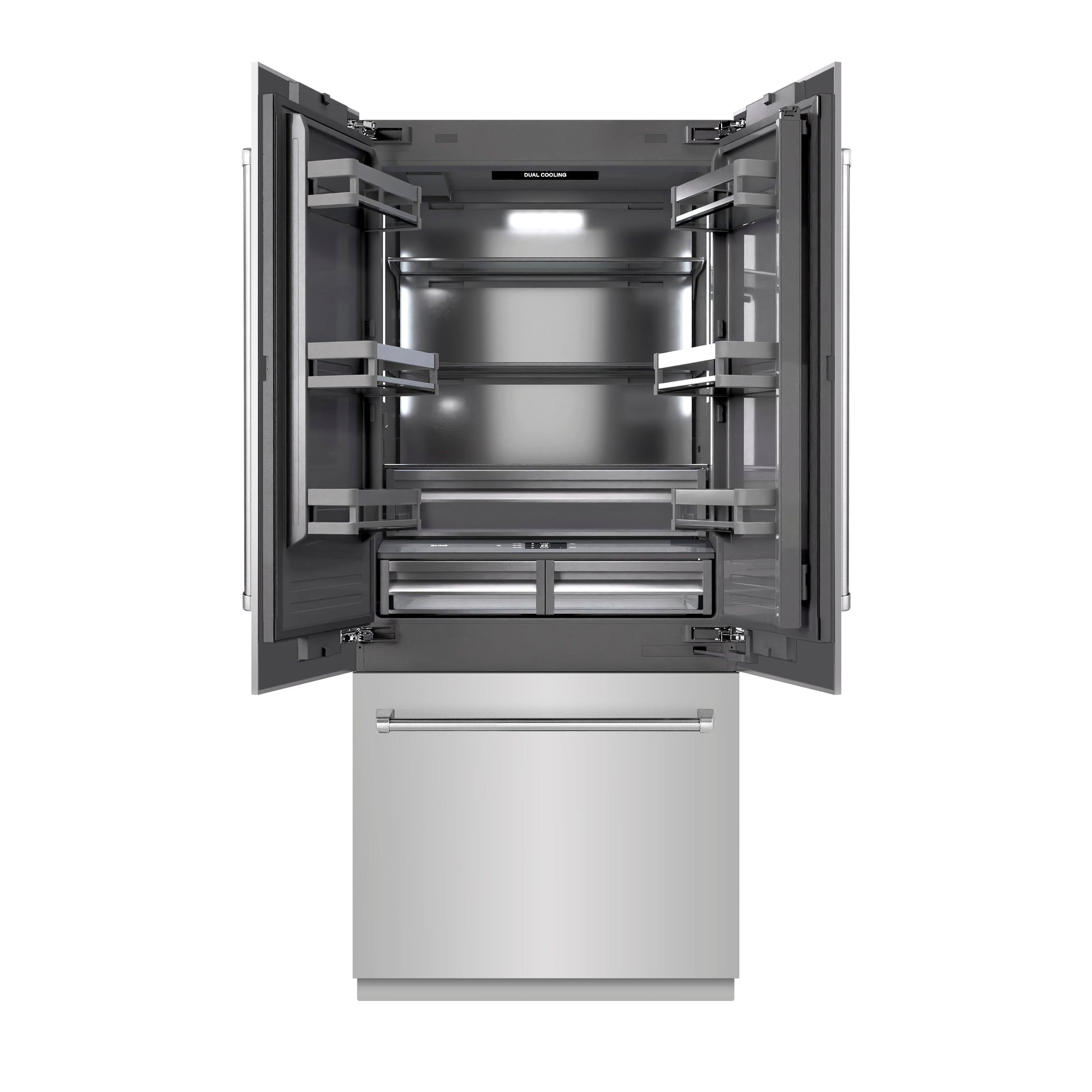 ZLINE 36 in. 19.6 cu. ft. French Door Built-In Bottom Freezer Refrigerator with Water Dispenser and Ice Maker in Stainless Steel with Graphite Gray Interior (GRBIV-304-36)
