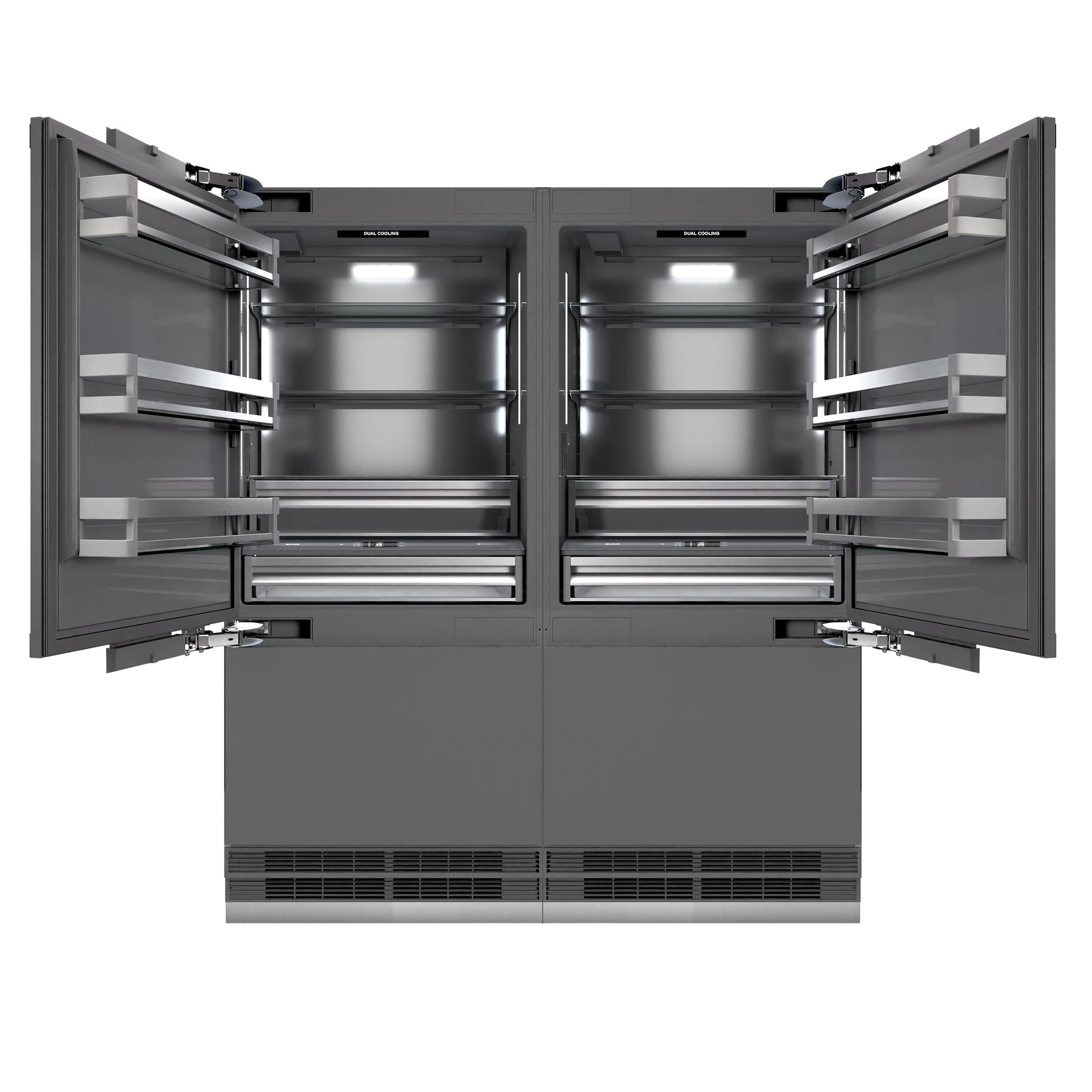 Luxury isn’t meant to be desired - it’s meant to be attainable. The ZLINE 72 in. 39.6 cu. ft. Panel Ready French Door Built-In Bottom Freezer Refrigerator with Water Dispensers and Ice Makers with Graphite Gray Interior (GRBIT-72) provides the ultimate upgrade to the center of your home by pairing premium dual cooling technology with enhanced storage capacity for multiple grocery items. Achieve ZLINE Attainable Luxury® excellence with innovative features designed to enhance your kitchen’s cooling and freezing capability.