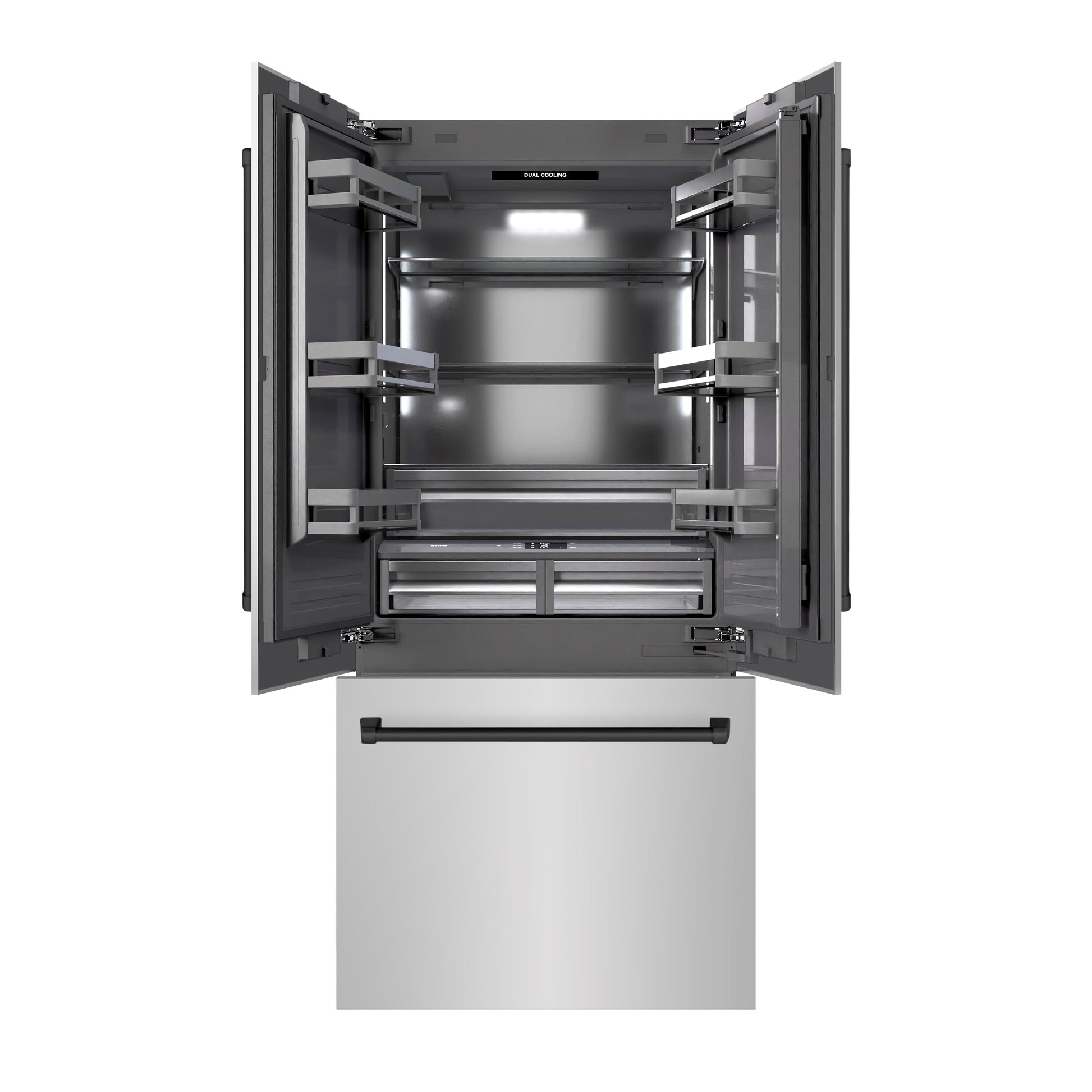 Luxury isn’t meant to be desired - it’s meant to be attainable. The ZLINE Autograph Edition 36 in. 19.6 cu. ft. French Door Built-In Bottom Freezer Refrigerator with Water Dispenser and Ice Maker in Stainless Steel with Graphite Gray Interior and Matte Black Accents (GRBIVZ-304-36MB) provides the ultimate upgrade to the center of your home by pairing premium dual cooling technology with enhanced storage capacity for multiple grocery items. Achieve ZLINE Attainable Luxury® excellence with innovative features designed to enhance your kitchen’s cooling and freezing capability.