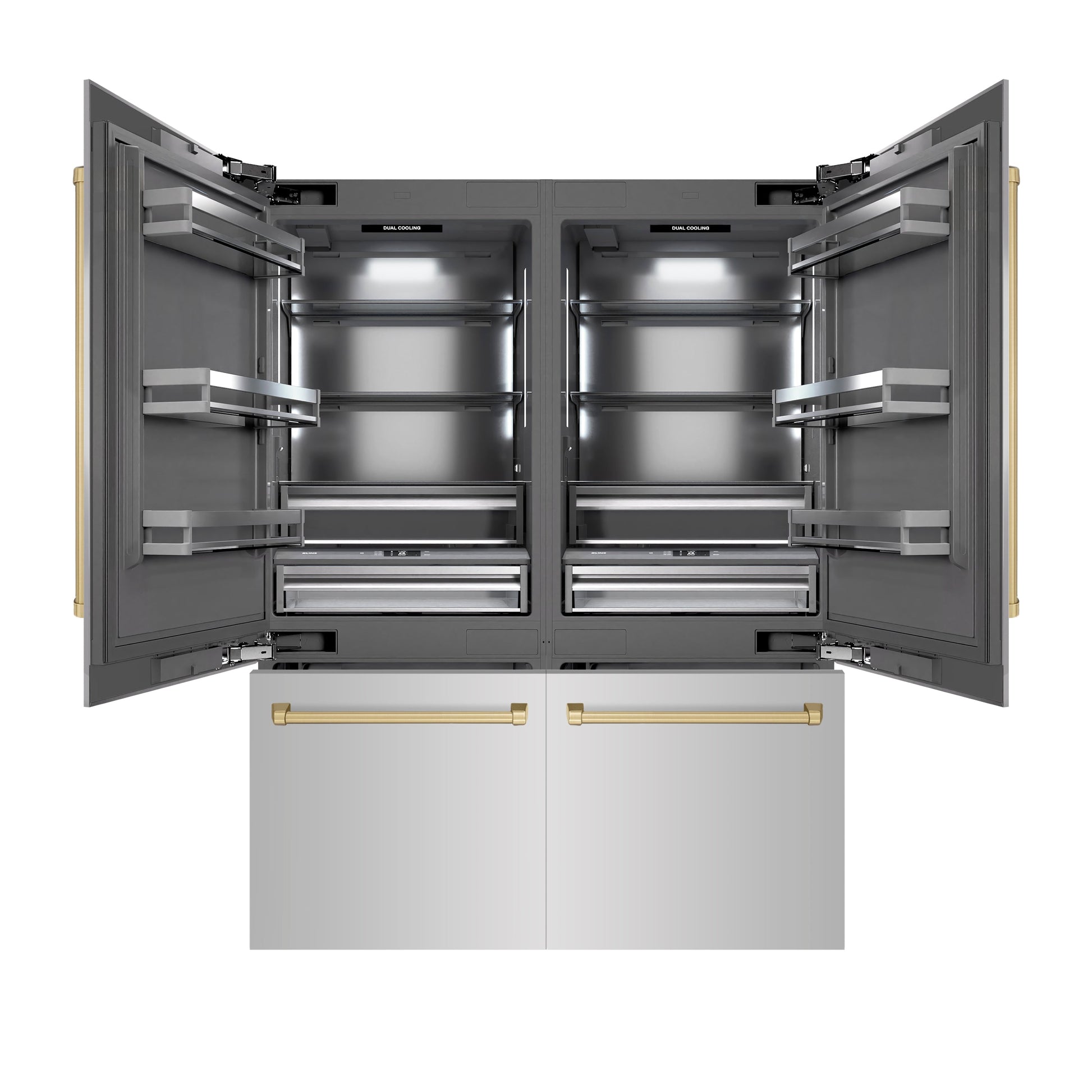 ZLINE Autograph Edition 60 in. 32.2 cu. ft. French Door Built-In Bottom Freezer Refrigerator with Water Dispenser and Ice Maker in Stainless Steel with Graphite Gray Interior and Champagne Bronze Accents (GRBIVZ-304-60CB)