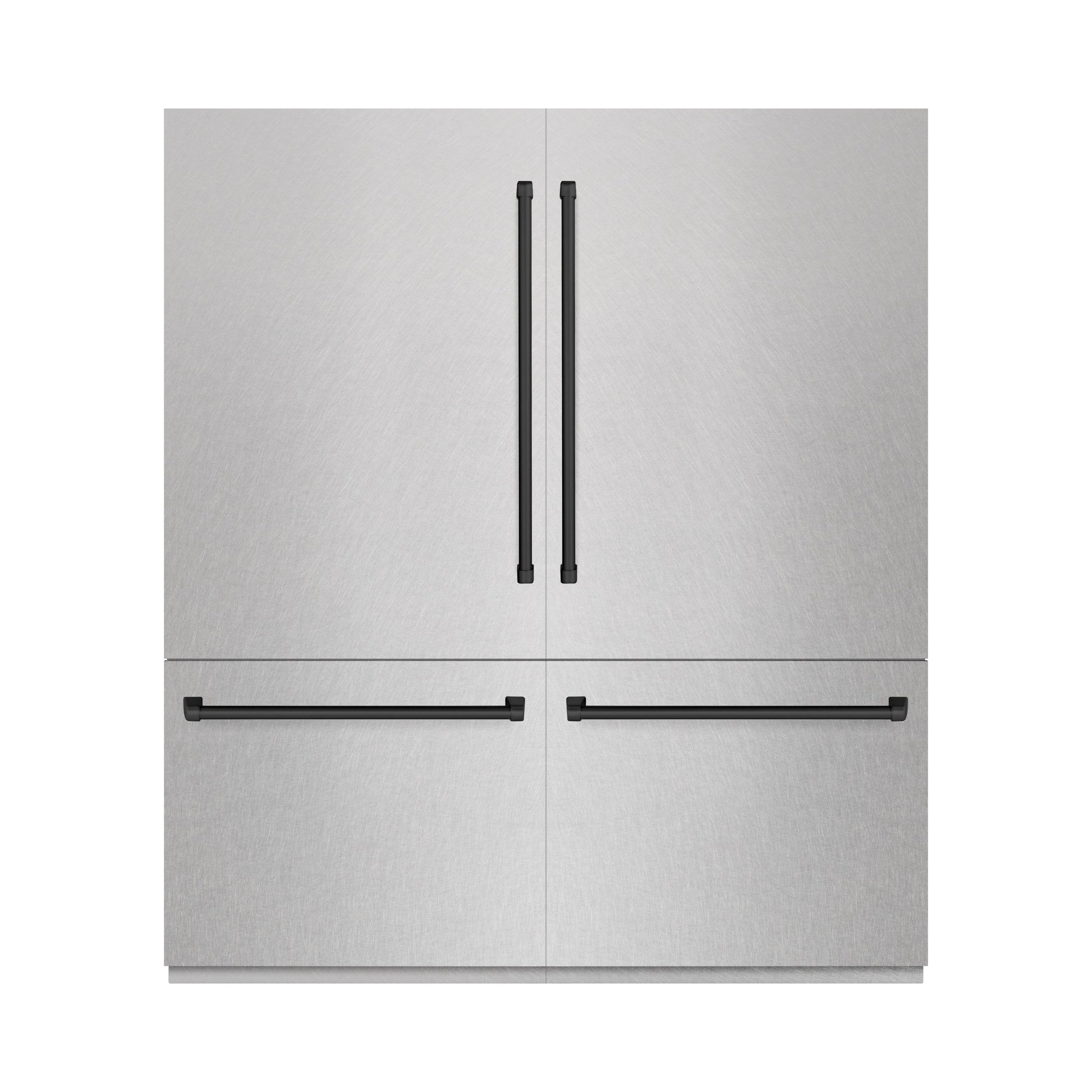 ZLINE Autograph Edition 72 in. 39.6 cu. ft. French Door Built-In Bottom Freezer Refrigerator with Water Dispensers and Ice Makers in DuraSnow® Stainless Steel and Matte Black Accents (RBITZ-SN-72-MB)