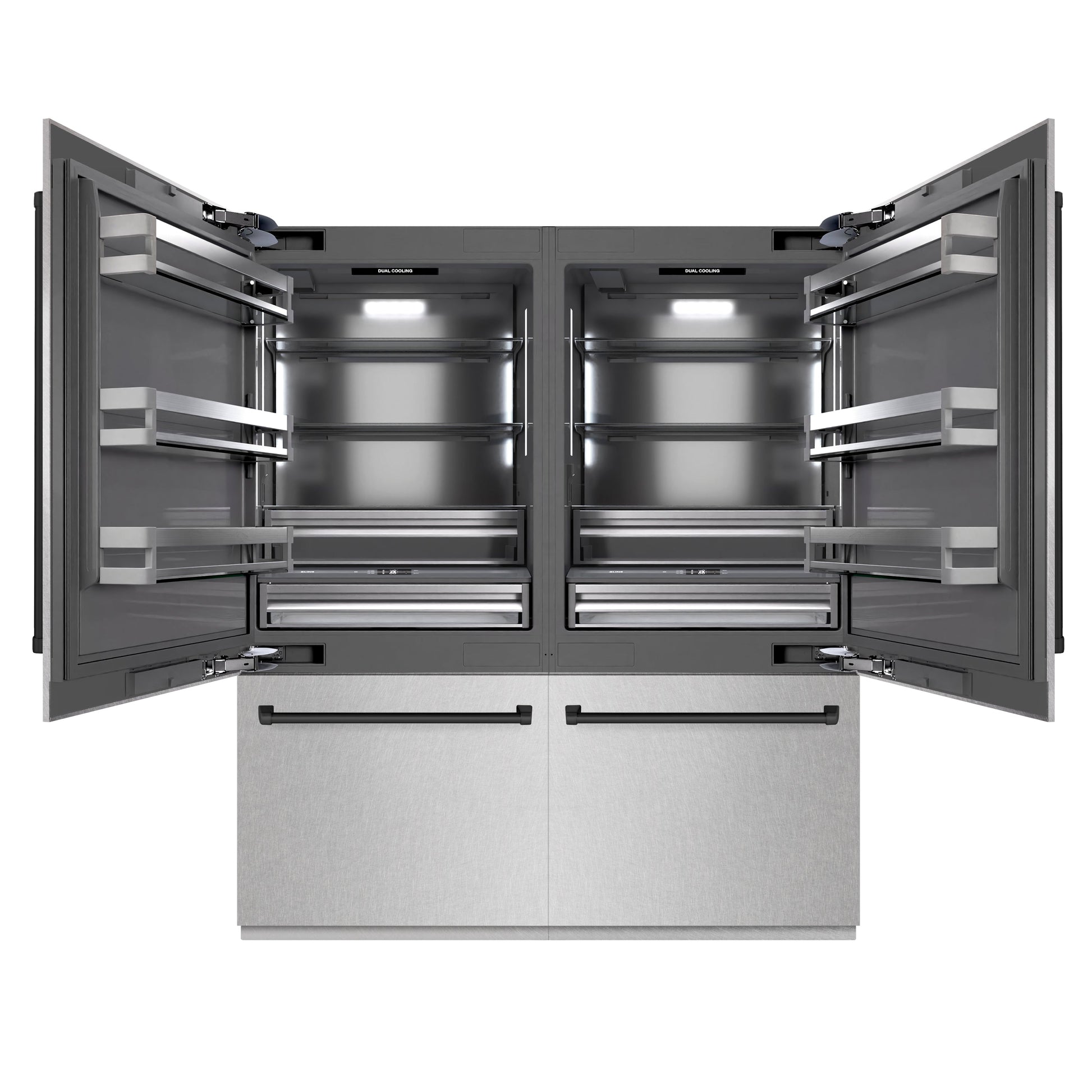 ZLINE Autograph Edition 72 in. 39.6 cu. ft. French Door Built-In Bottom Freezer Refrigerator with Water Dispensers and Ice Makers in DuraSnow® Stainless Steel with Graphite Gray Interior and Matte Black Accents (GRBITZ-SN-72-MB)
