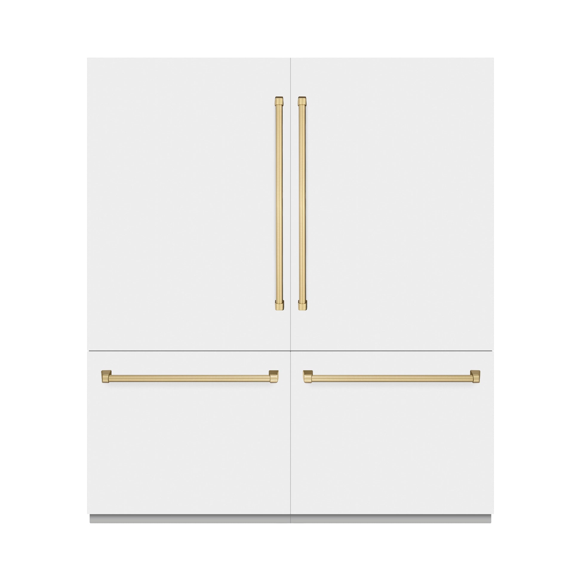 ZLINE Autograph Edition 72 in. 39.6 cu. ft. French Door Built-In Bottom Freezer Refrigerator with Water Dispensers and Ice Makers in White Matte and Champagne Bronze Accents (RBITZ-WM-72-CB)