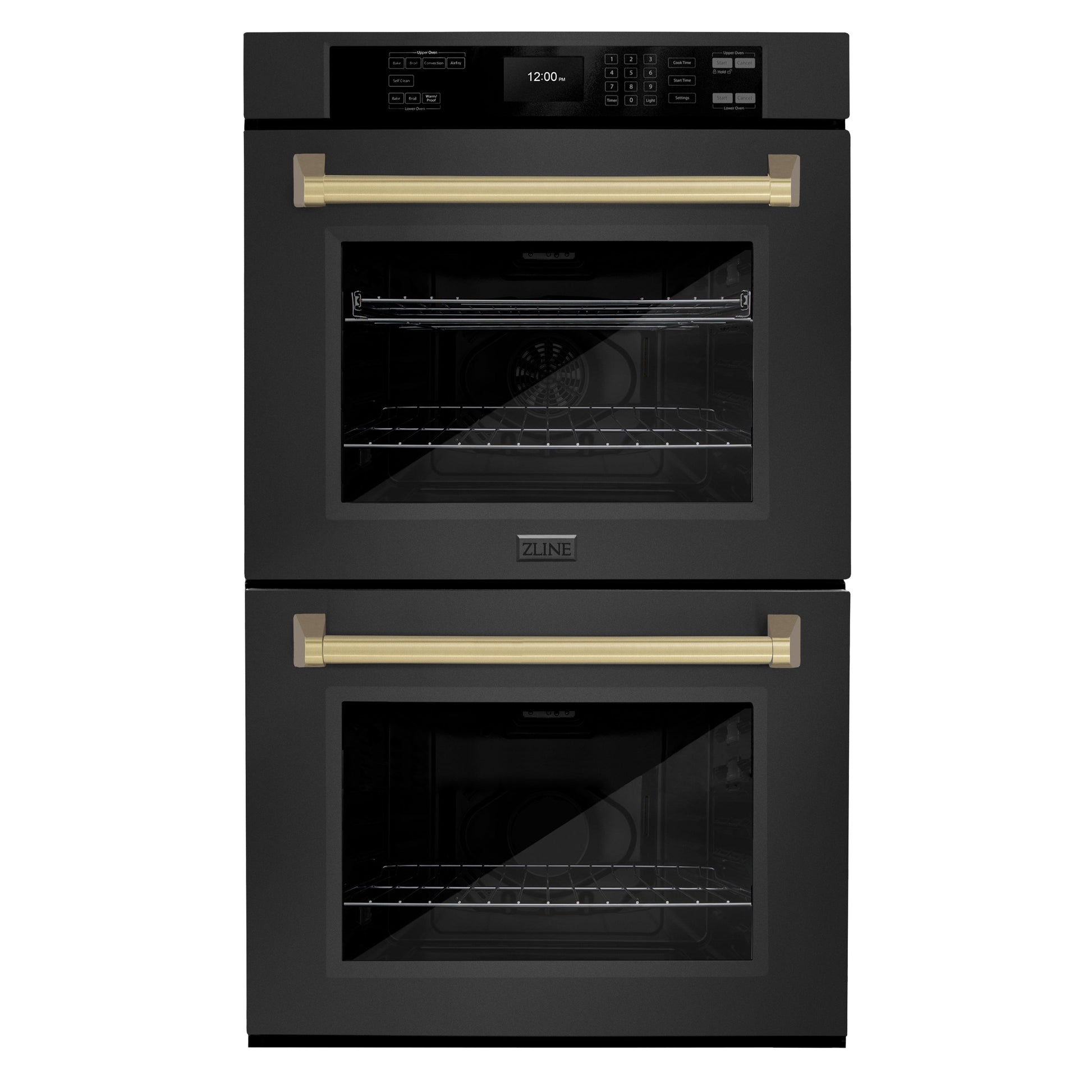 ZLINE 30 in. Autograph Edition Professional True Convection Double Wall Oven with Air Fry and Self Clean in Black Stainless Steel with Champagne Bronze Handles (WADBZ-30-CB)