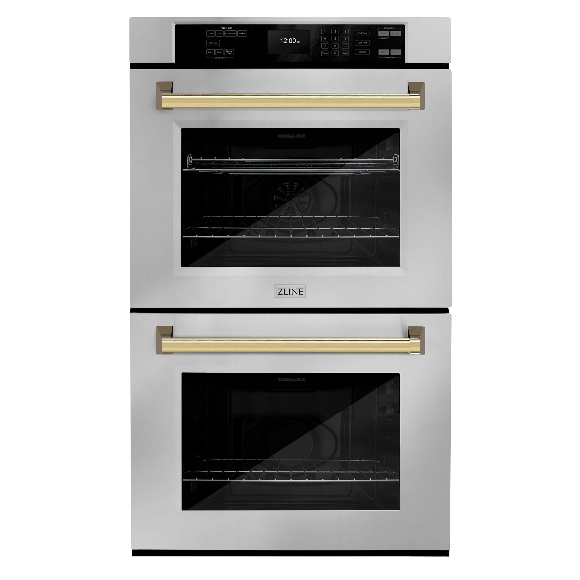 ZLINE 30 in. Autograph Edition Professional True Convection Double Wall Oven with Air Fry and Self Clean in Stainless Steel with Polished Gold Handles (WADZ-30-G)
