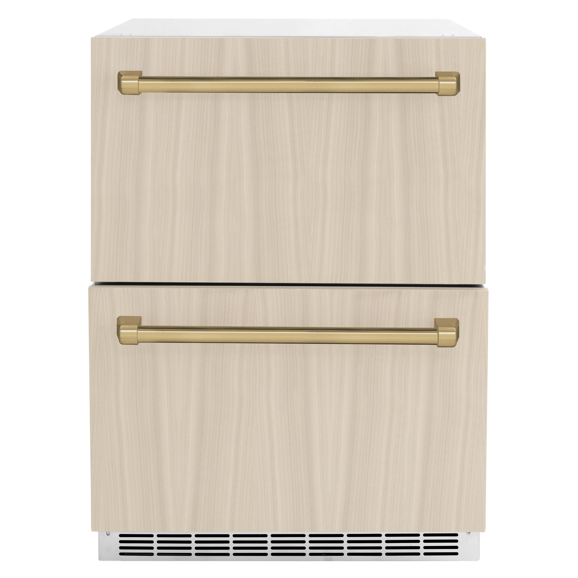 Luxury isn’t meant to be desired - it’s meant to be attainable. The ZLINE Autograph Edition 24 in. Touchstone 168 Can Outdoor-Rated Dual Refrigerator Drawer with Panel-Ready Doors and Champagne Bronze Handles (RDSPOZ-24-CB) features state-of-the-art cooling technology, dual smooth glide soft-closing drawers, and an expansive interior capable of holding multiple beverages. Designed with a fully wrapped, anti-sweat stainless steel exterior customizable panel-ready doors perfect for indoor or outdoor installation, ZLINE Autograph Edition Touchstone Refrigerator Drawers are masterfully crafted to let you host parties of any size for any occasion.