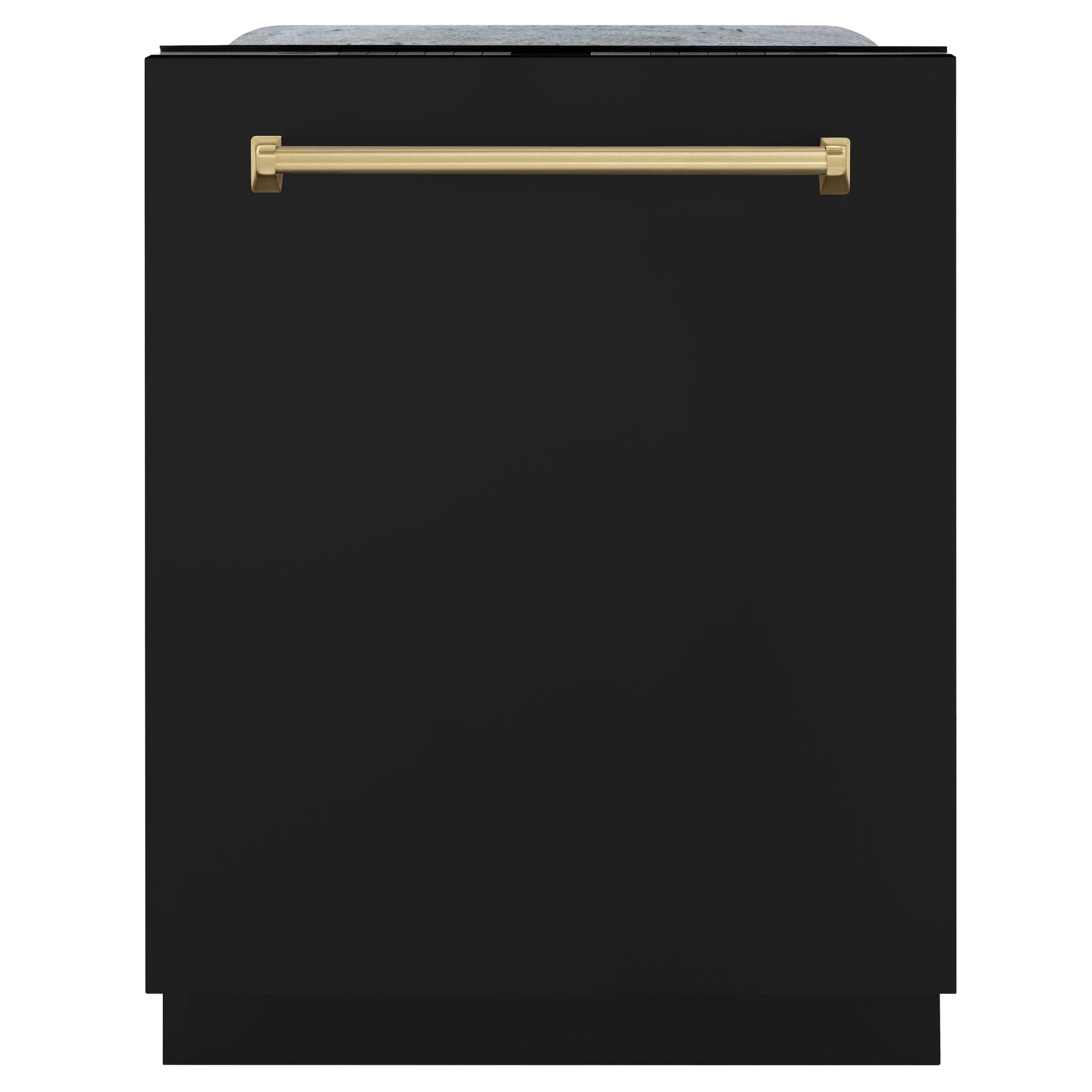 ZLINE Autograph Edition 24" Monument Series 3rd Rack Top Touch Control Tall Tub Dishwasher in Black Matte with Champagne Bronze Handle, 45dBa (DWMTZ-BLM-24-CB)