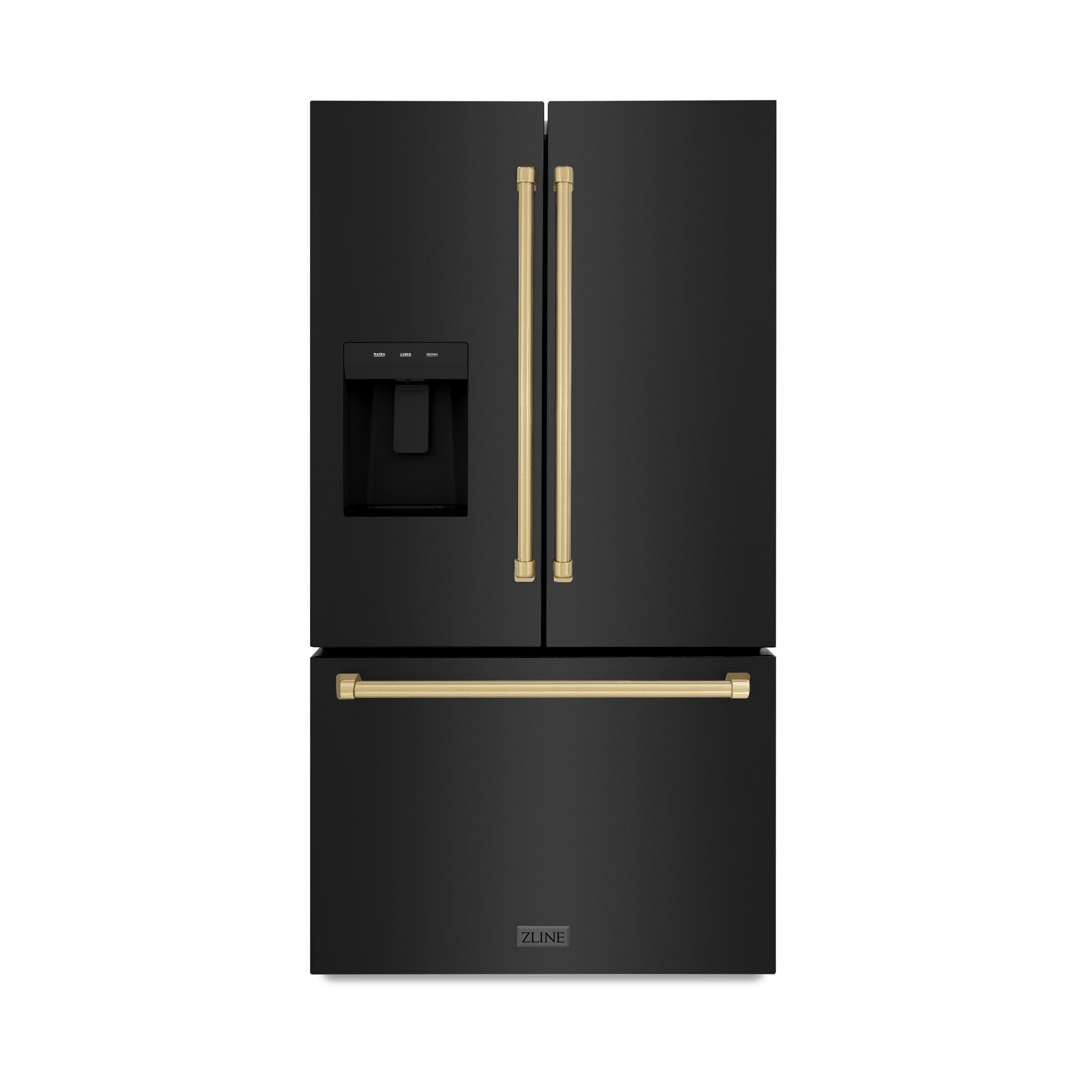 Luxury isn’t meant to be desired — it’s meant to be attainable. The ZLINE Autograph Edition 36 in. 28.9 cu. ft. Standard-Depth French Door External Water Dispenser Refrigerator with Dual Ice Maker in Fingerprint-Resistant Black Stainless Steel and Champagne Bronze Traditional Handles (RSMZ-W-36-BS-CB) features a state-of-the-art cooling system, a professional built-in water and ice dispenser, and an expansive interior designed to store more items than ever before. With an elevated level of luxurious design, ZLINE Autograph Edition Standard-Depth Refrigerators are masterfully crafted to preserve more space for what matters.