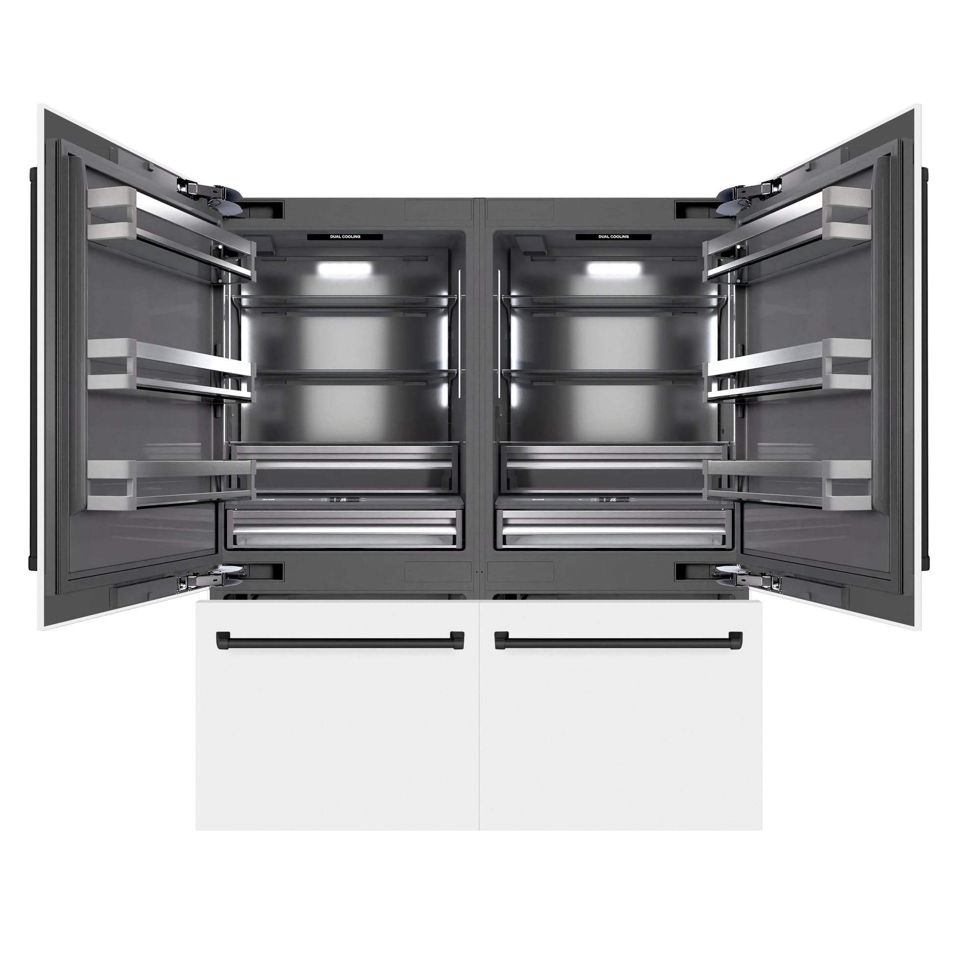 ZLINE Autograph Edition 72 in. 39.6 cu. ft. French Door Built-In Bottom Freezer Refrigerator with Water Dispensers and Ice Makers in White Matte with Graphite Gray Interior and Matte Black Accents (GRBITZ-WM-72-MB)